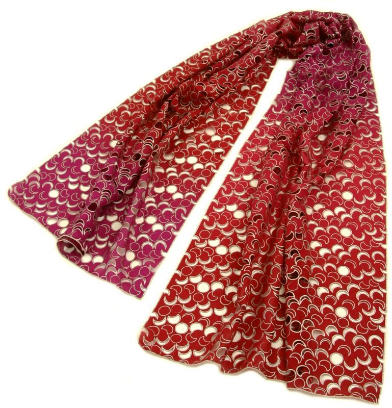 シルクカットワークスカーフ”エクリプス・アニュレール (金環日蝕)"・ルージュ・バイオレット