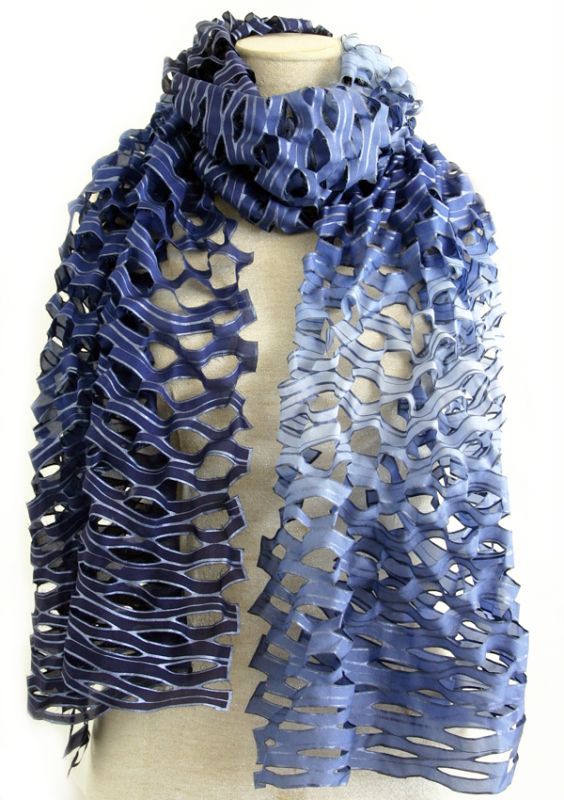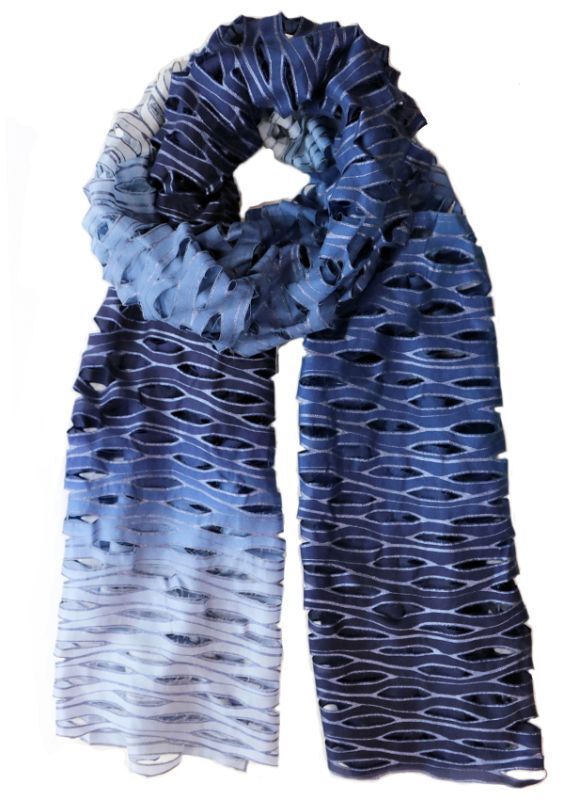 シルクオンブレ・カットワークスカーフ ”ブリュイ・デ・ヴァーグ(波の音)"・ブルーマリン