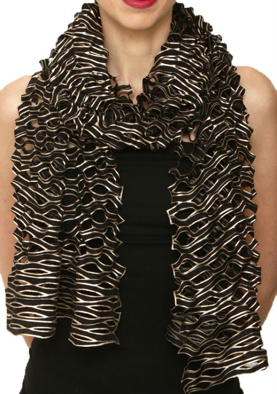 Silk Cutwotk Scarf "Bruits des Vagues(The Sound of Waves)" /Black Champagne