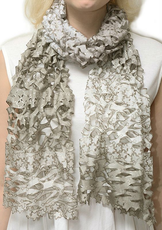 満天の星空からこぼれ落ちるような流れ星のカットワークのスカーフです。