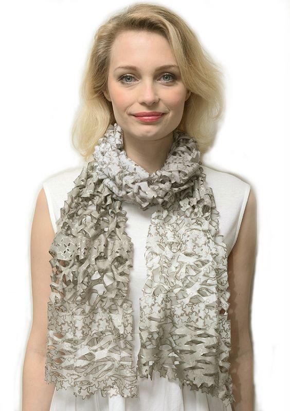 Silk Cutwork Scarf "Etoiles Filantes (流れ星/Shooting Stars)" / Khaki