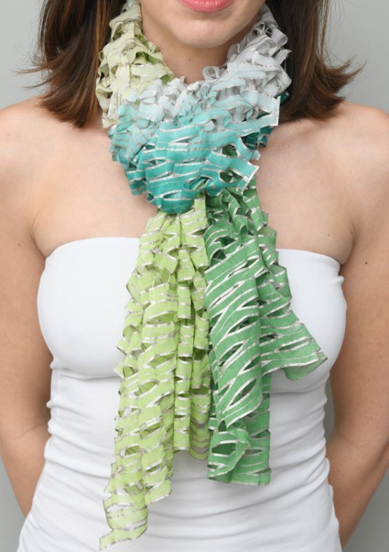 コットンローンオンブレ・カットワークスカーフ ”ブリュイ・デ・ヴァーグ(波の音)"・グリーンフィールド [手洗いOK]