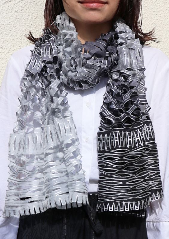 Silk Cutwork Scarf "Les Rizières en Terrasse(棚田)"