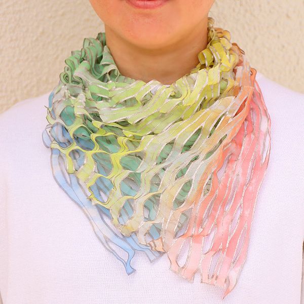 Silk Cutwork Petit Scarf "Terre de Ciel(Sky on Earth)" / Pastel