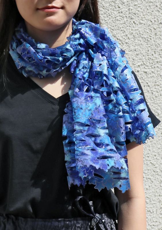 Silk Cutwork Ascot Scarf "Etoiles Filantes"