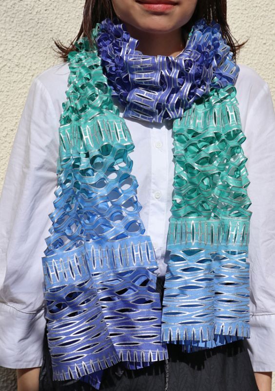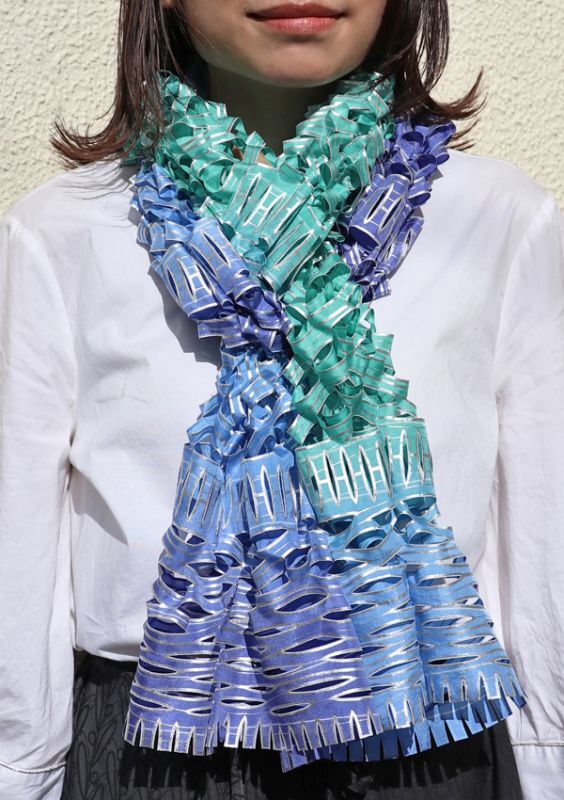 Silk Cutwork Scarf "Les Rizières en Terrasse(棚田)"