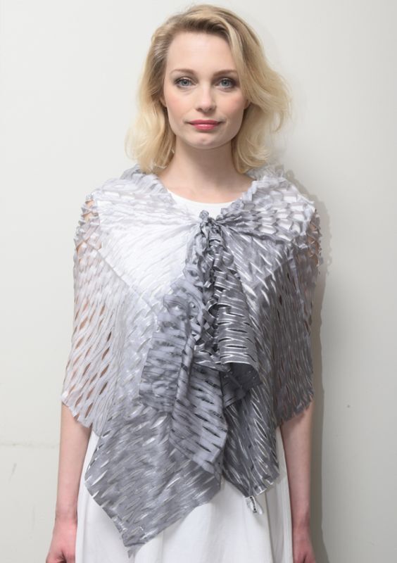 シルクオンブレ・カットワークスカーフ ”ブリュイ・デ・ヴァーグ(波の音)" ・シルバーグレー