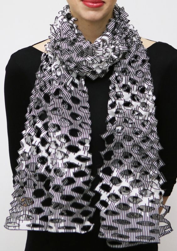 Silk Origami Scarf "Rain Stripe" Monochrome