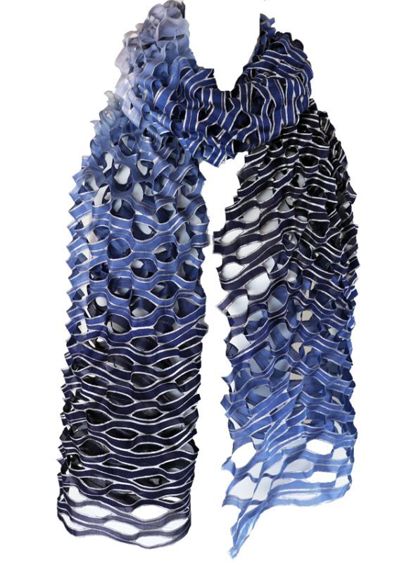 シルクオンブレ・カットワークスカーフ ”ブリュイ・デ・ヴァーグ(波の音)"・ブルーマリン[シルバー]