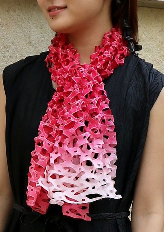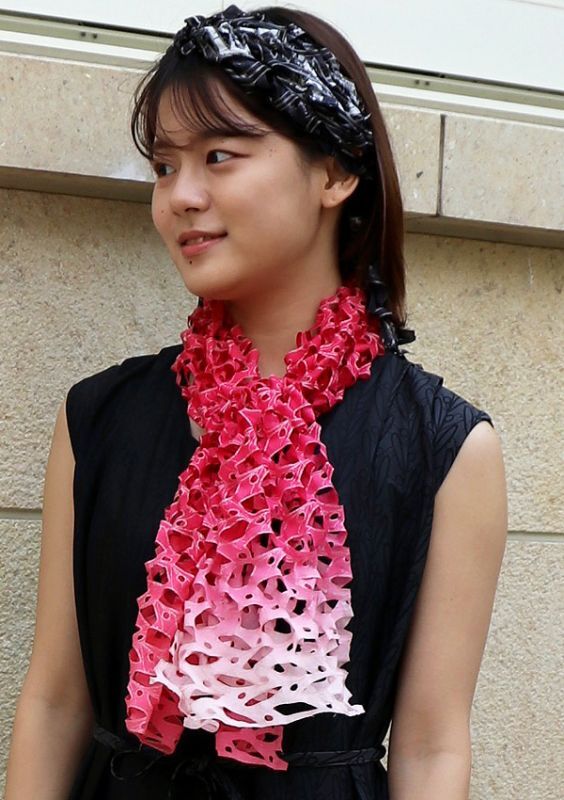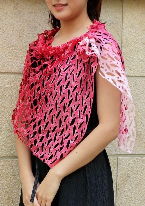 オーガニックコットンカットワークアスコットスカーフ”オリビエ(オリーブの樹)"・ルビーマゼンタ