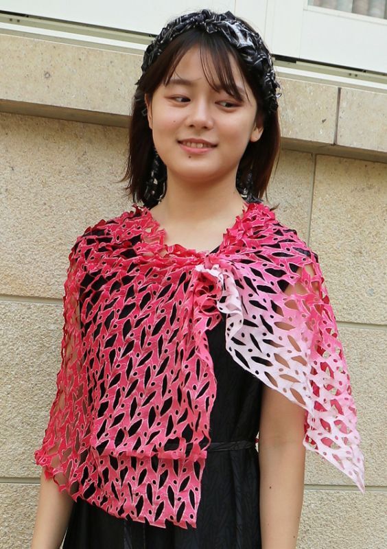 羽織るとミニケープにもなります。