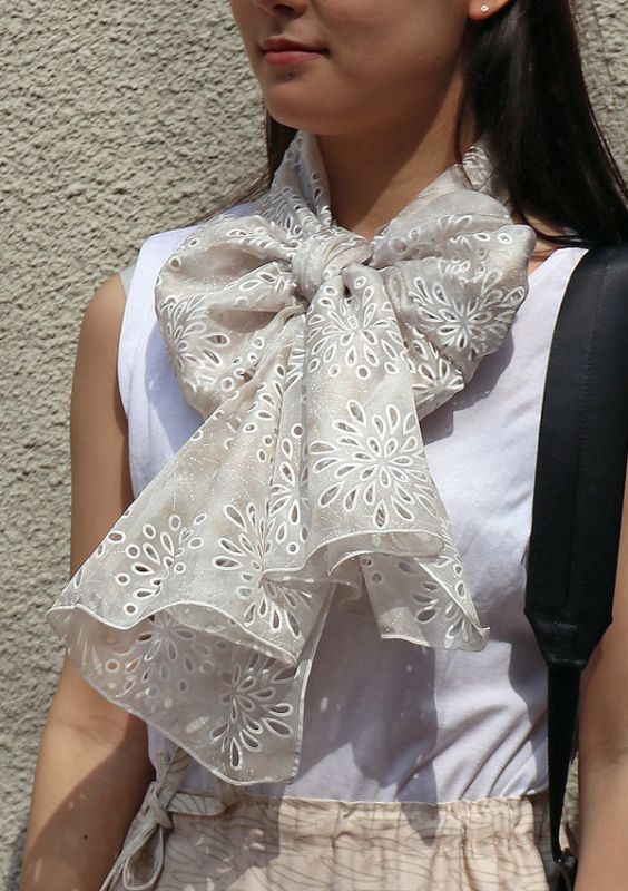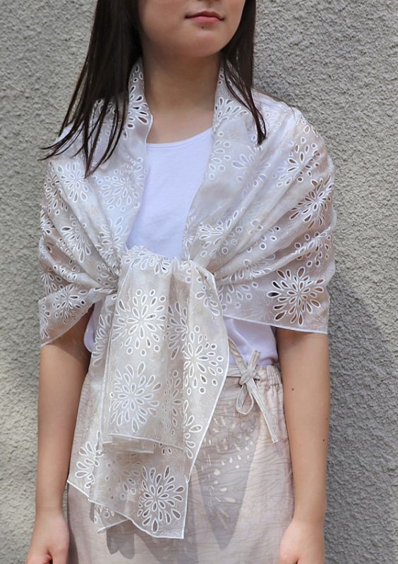 Silk Cutwork Scarf "Feu d'artifice(Fireworks)"/ Pearl Gray