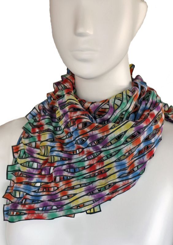 シルクカットワークプチスカーフ ”ジャルダン・ド・フルール(Flower Garden)” ・カスケードレインボー