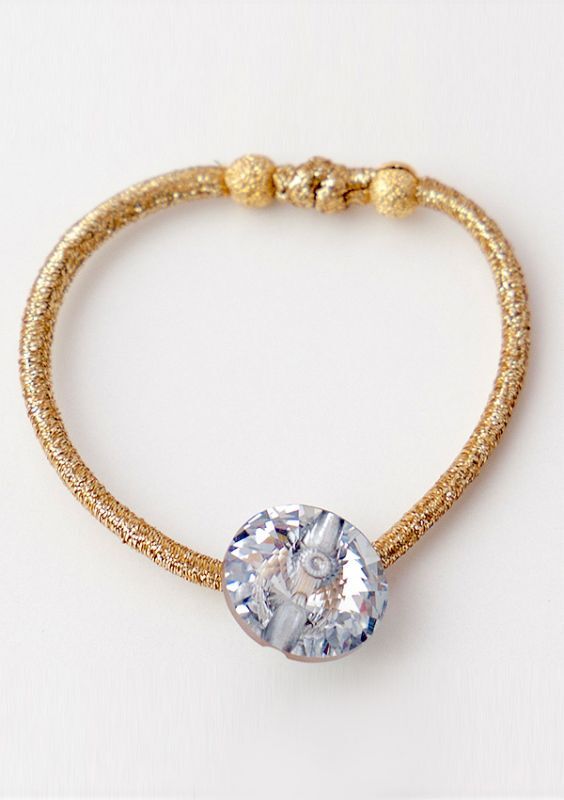ラメ糸使いのゴムにクリスタルをあしらったスカーフ留め。