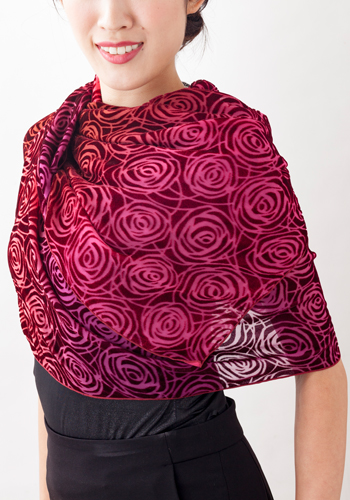 シルクベルベットカットワークスカーフ"ロゼット・ネブーラ" ・ベリーボルドー