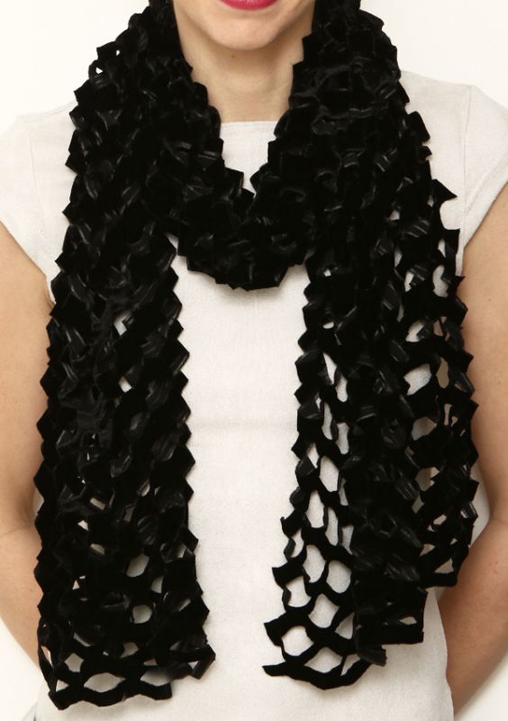 シルクベルベットスカーフ"ブリュイ・デ・ヴァーグ(波の音)”・ブラックガンメタル