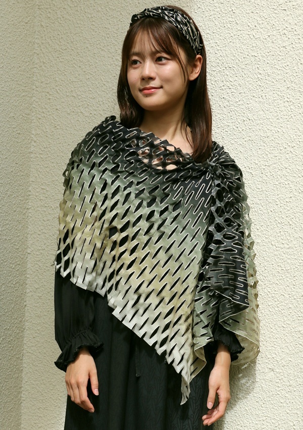 ほどよい透け感と艶感が魅力的なシルク羽二重に、滝の流れの様な、縦方向のグラデーションをプリントしました。