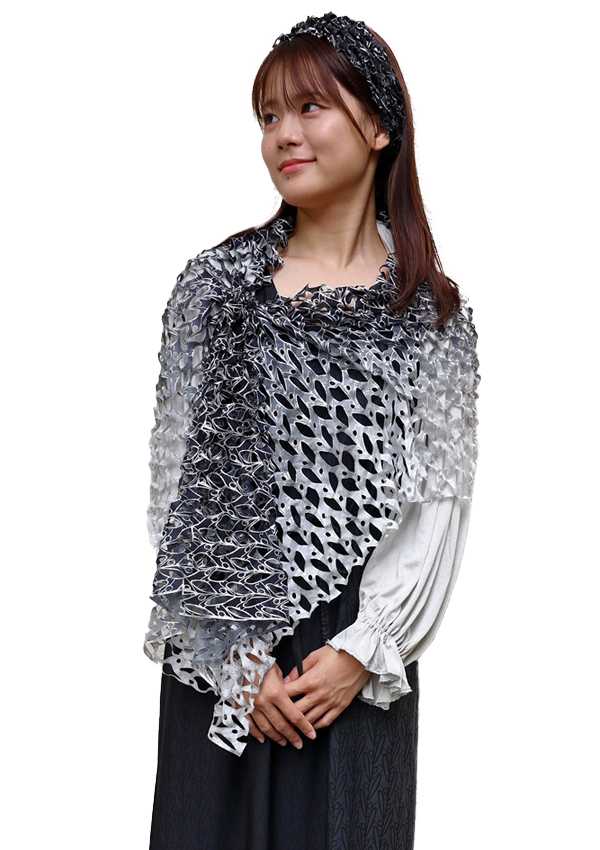 Silk Cutwork Long Scarf "L'Olivier(The Olive Tree)" / Monochrome