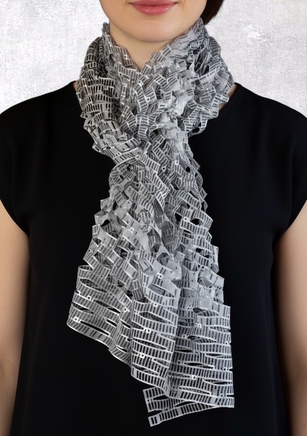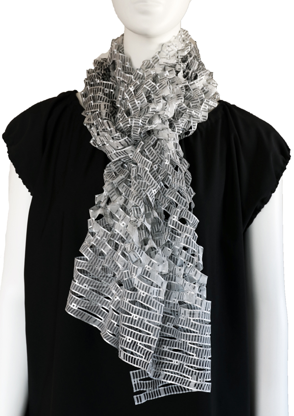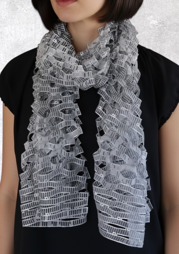 Silk Cutwork Long Scarf "Rain Stripe" / Monochrome