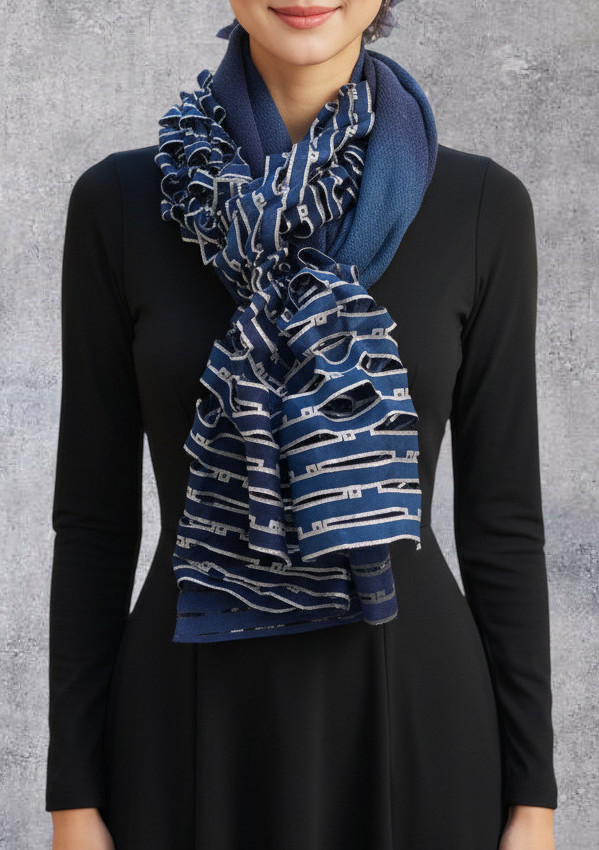 Wool & Silk Cutwork Long Scarf "Allumettes" / Blue Nocturne