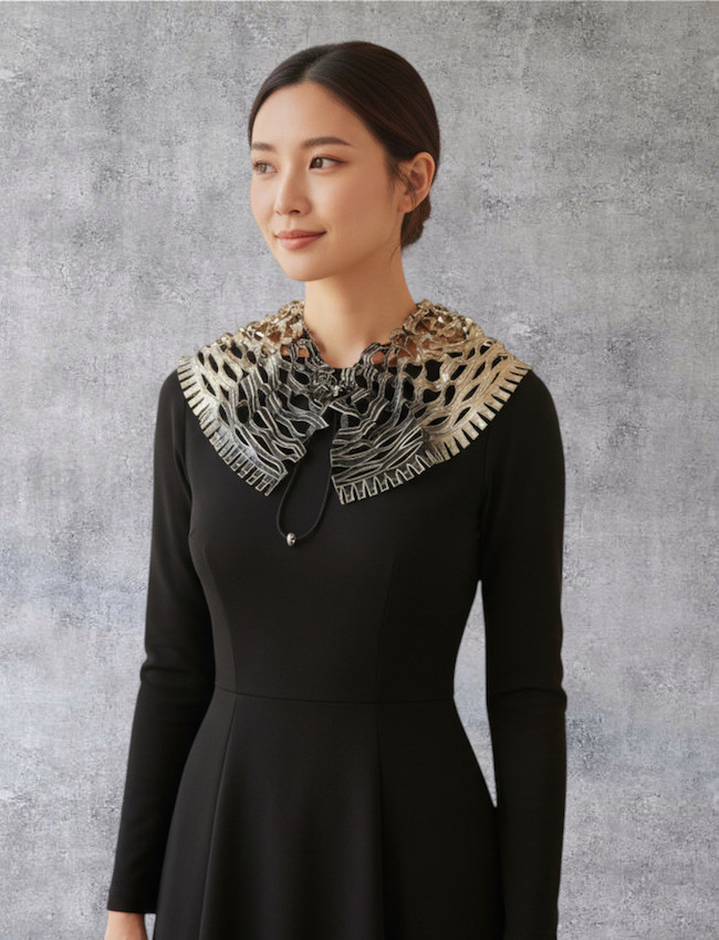 巻かずにストッパーで自由に調整できるMATOUシリーズのカラー(付け襟タイプ)です。