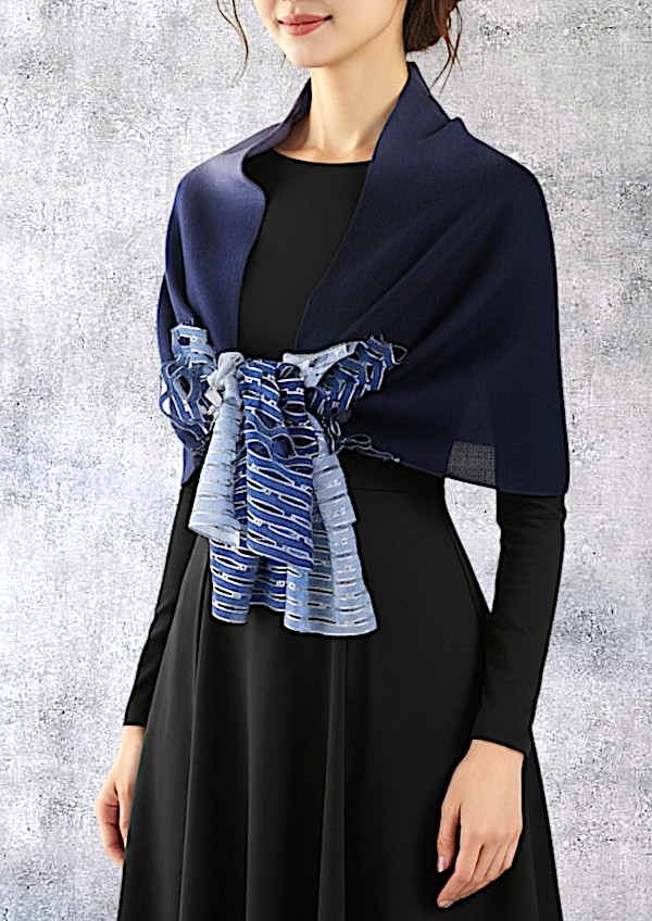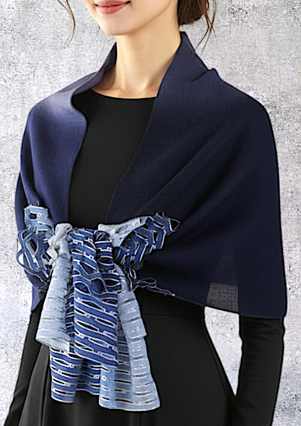 Wool & Silk Cutwork Long Scarf "Allumettes" / Bleu Marine
