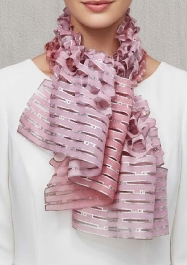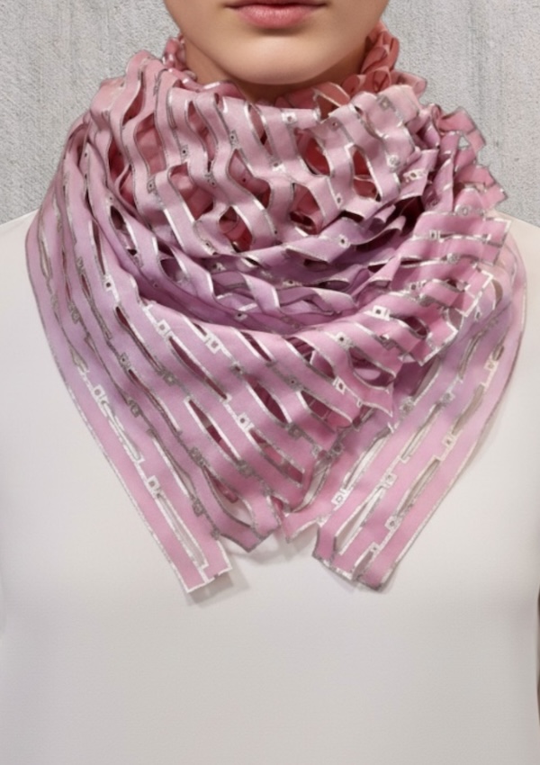 Silk Cutwork Long Scarf "Allumettes" / Lavender Rose