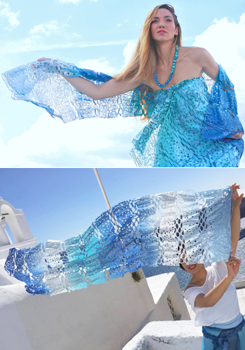 Silk Cutwork Scarf "Les bulles et les vagues (The Bubbles and the Waves)"