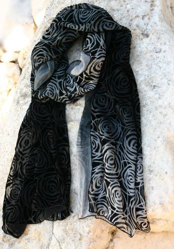 シルクベルベットカットワークスカーフ"ロゼット・ネブーラ" ・ブラックノクチューン