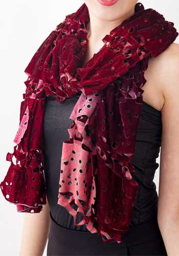 シルクベルベットカットワークスカーフ"レ・ビュル・エ・レ・ヴァーグ (泡と波)" ・ベリーボルドー