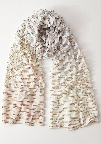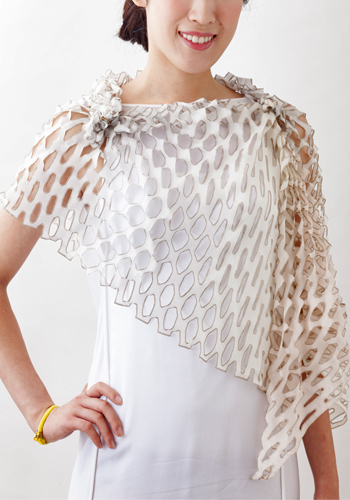 ほどよい透け感と艶感が魅力的なシルク羽二重を、手作業でグラデーションに染めあげました。七夕の“網飾り”のような切込みの細工には、ラメで縁取りが施されています。